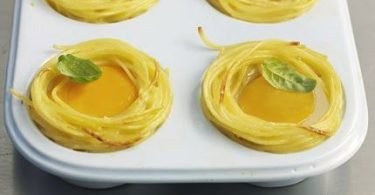 - Recouvrez les spaghetti avec le reste de la base de muffin.